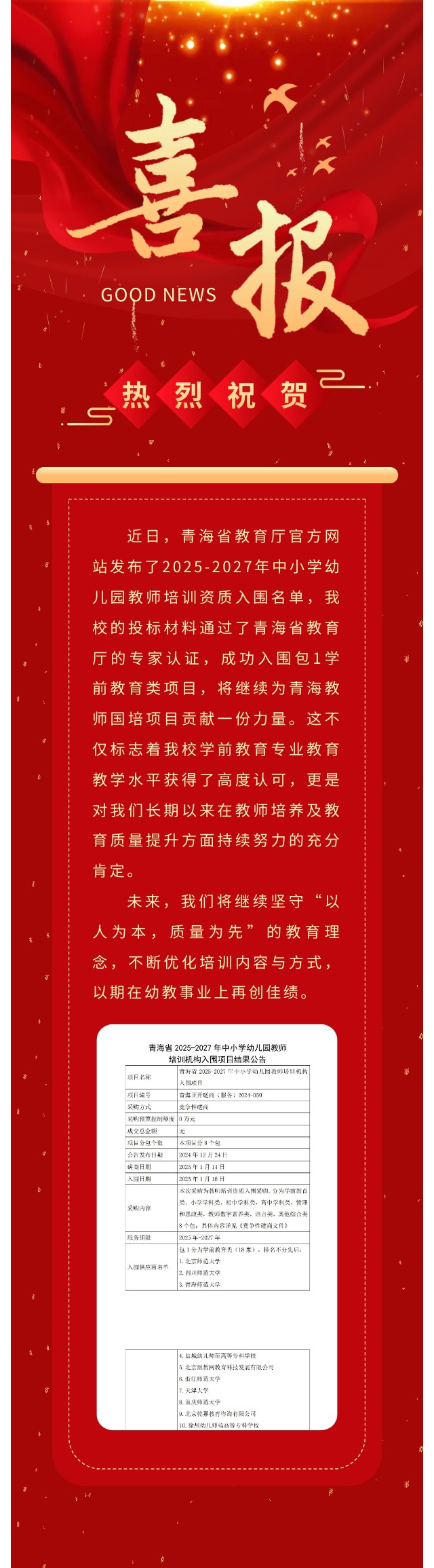 喜报:热烈祝贺我校成功入围青海省2025-2027年中小学幼儿园教师培训资质名单