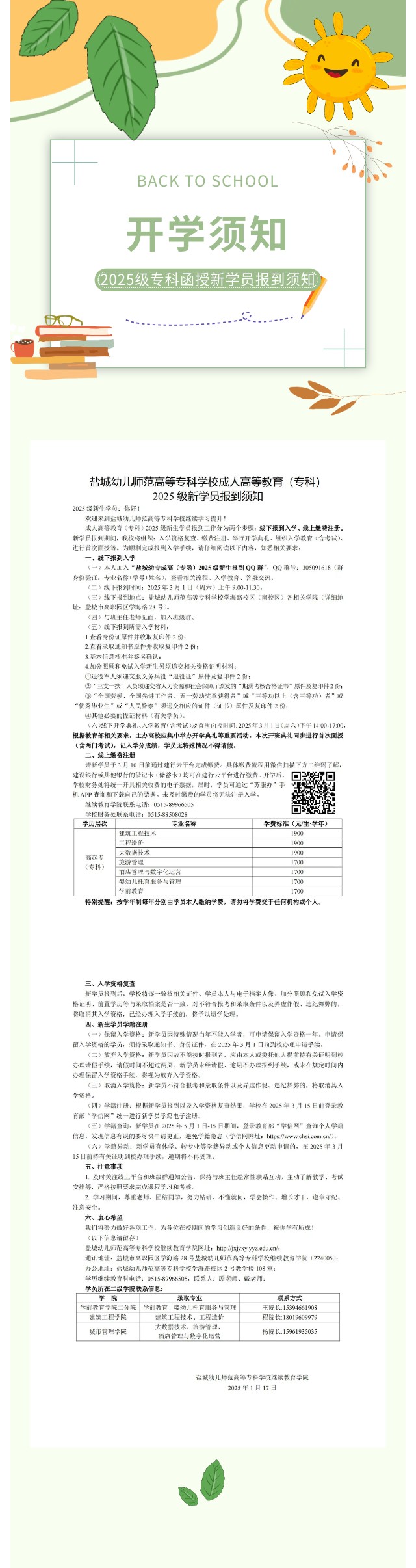 盐城幼儿师范高等专科学校成人高等教育(专科) 2025级新学员报到须知