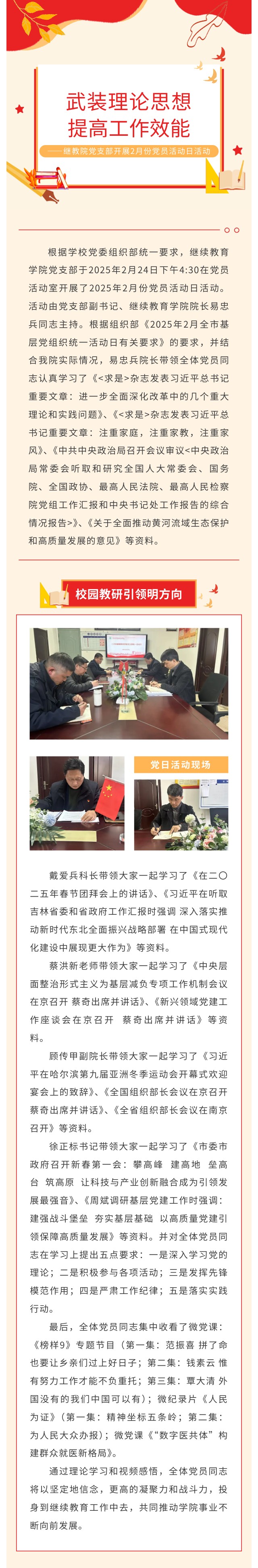 武装理论思想 提高工作效能 ——继续教育学院党支部开展2025年2月份党员活动日活动