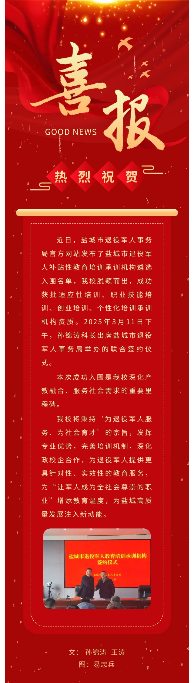 喜报:我校成功获批 盐城市退役军人补贴性教育培训承训机构资质