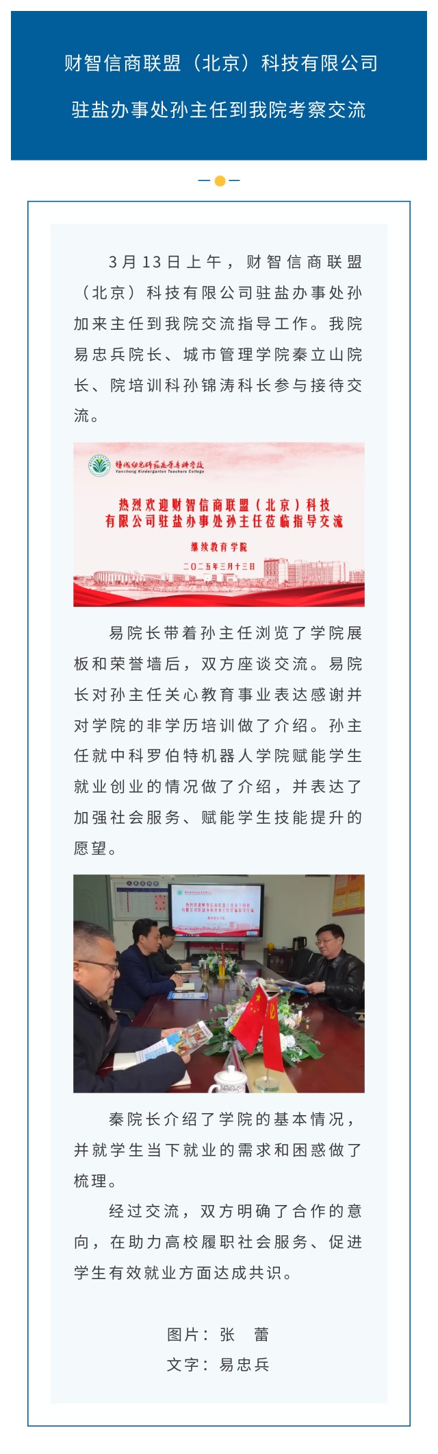 财智信商联盟(北京)科技有限公司 驻盐办事处孙主任到我院考察交流