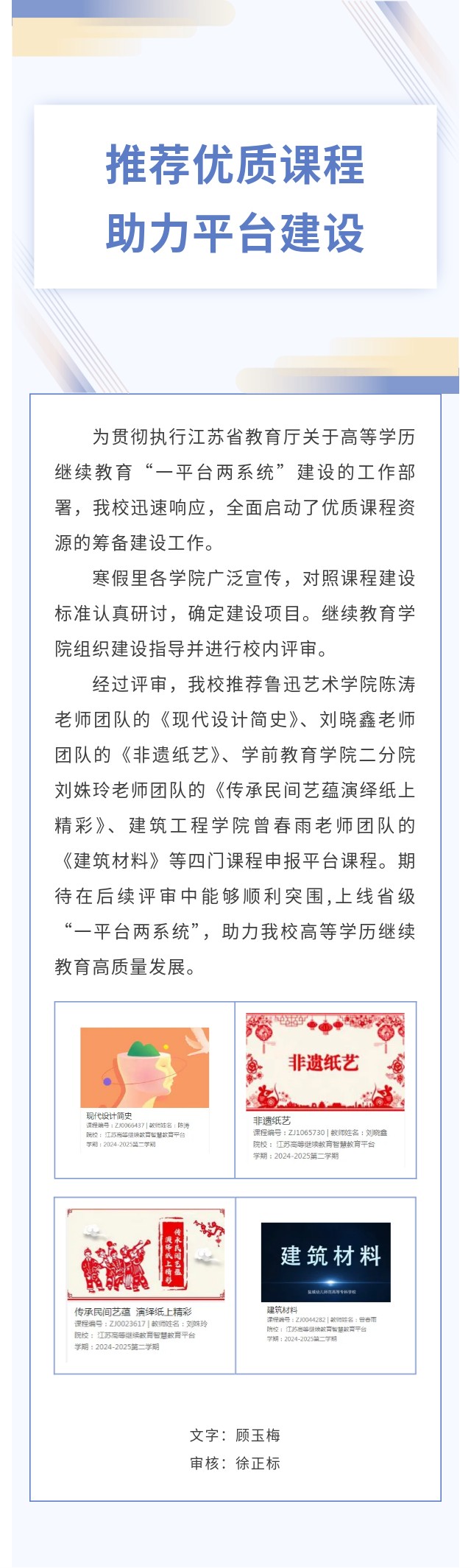 我校推荐优质课程 助力“一平台两系统”工程建设