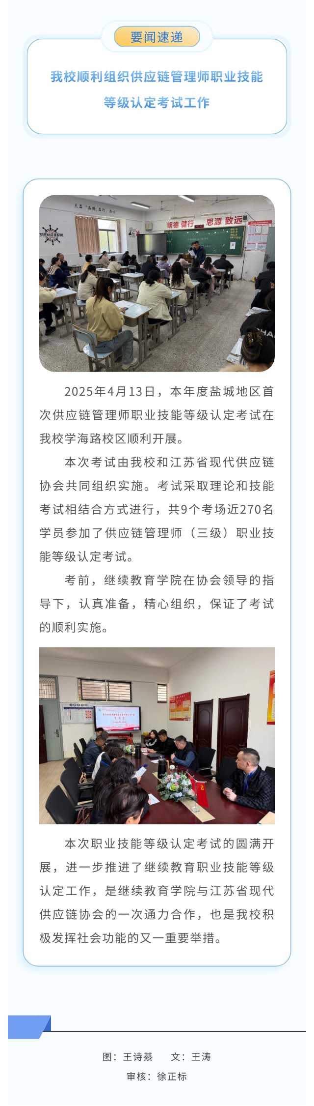 我校顺利组织供应链管理师职业技能等级认定考试工作