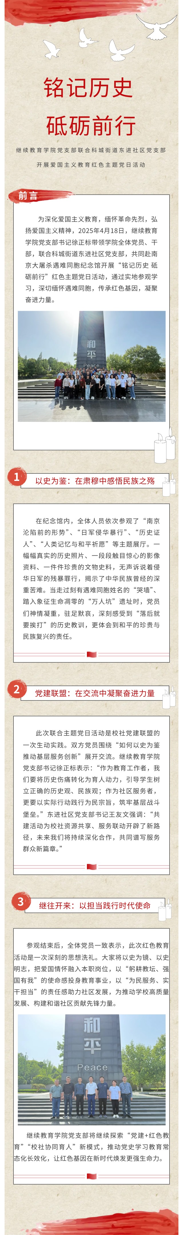 铭记历史 砥砺前行 ——继续教育学院党支部联合科城街道东进社区党支部开展爱国主义教育红色主题党日活动