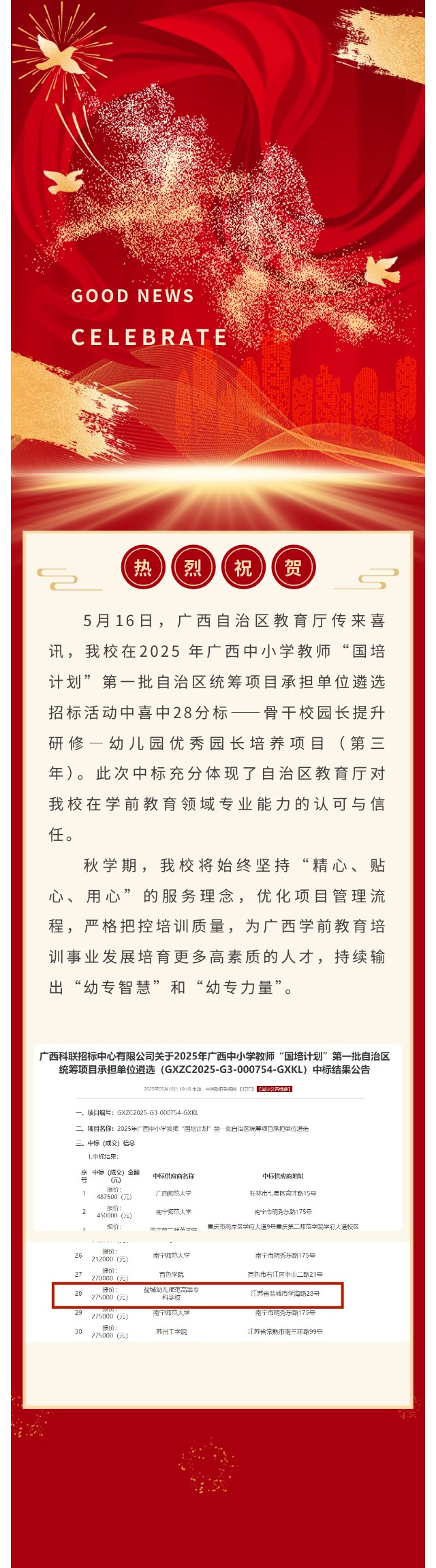 喜报:我校中标2025年广西中小学教师“国培计划”第一批自治区统筹单位遴选招标项目28分标