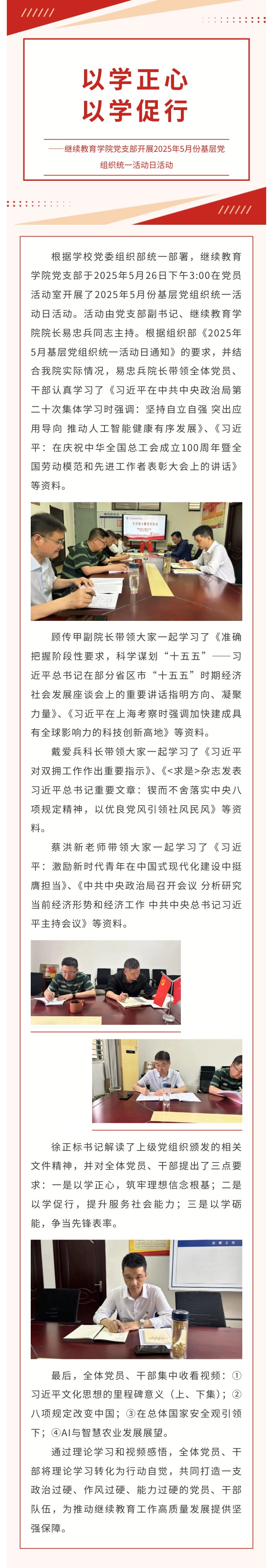 以学正心 以学促行 ——继续教育学院党支部开展2025年5月份基层党组织统一活动日活动
