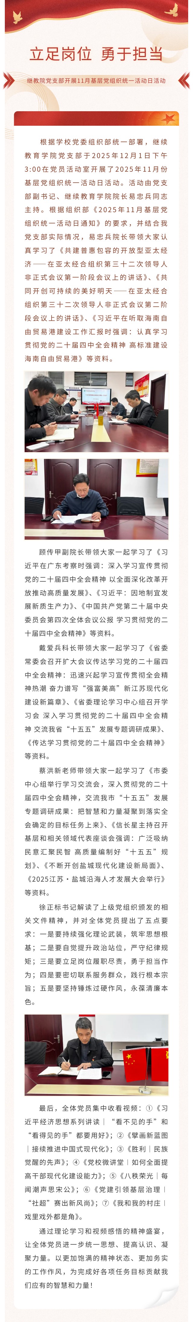 立足岗位 勇于担当 ——继续教育学院党支部开展2025年11月份基层党组织统一活动日活动