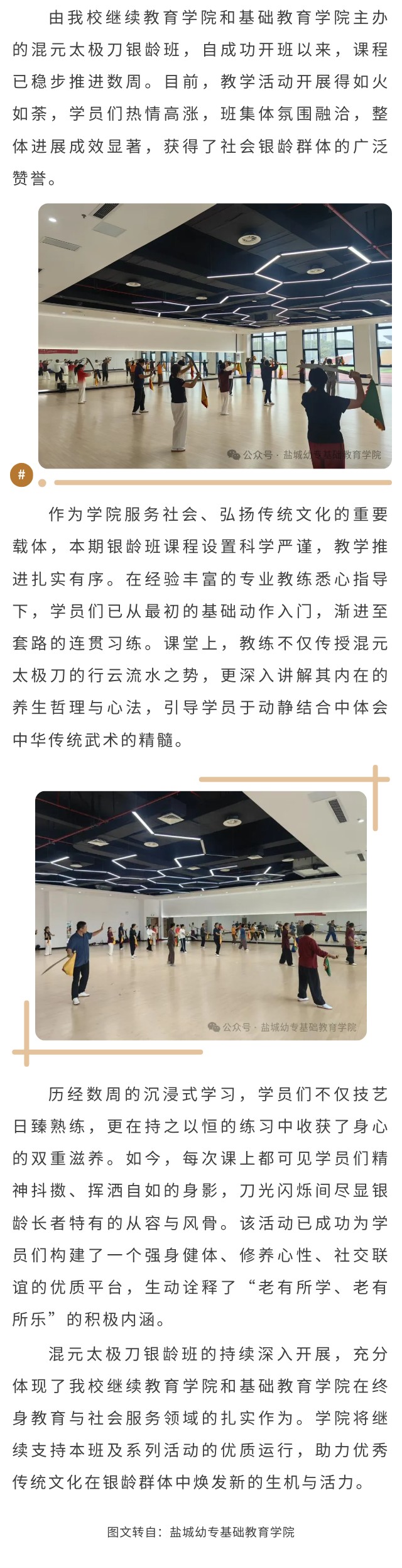 助力终身教育 弘扬文化传承 ——盐城幼专银龄太极刀顺利开班